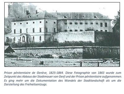In den letzten Jahren wurden verschiedene Aufnahmen der Gefängnisse von Genf (1858-63), Basel-Stadt (1863) und Lenzburg (1863) gefunden, die zu den ersten Fotografien zu diesem Thema gehören. Die meisten von ihnen sind Gelegenheitsfotographien, die weniger darauf abzielten, die Gefängniseinrichtungen selbst, als die Entwicklung der Stadtlandschaft und der Bauten rund um ein Gefängnis herum zu dokumentieren.